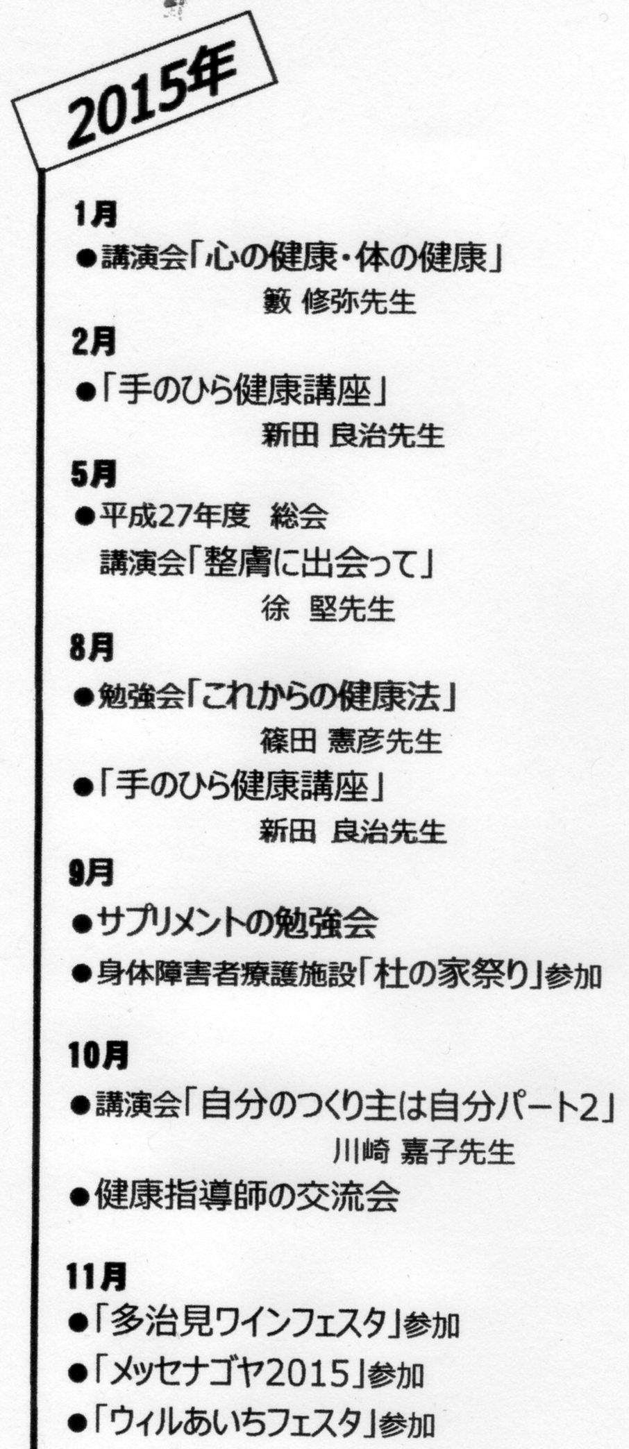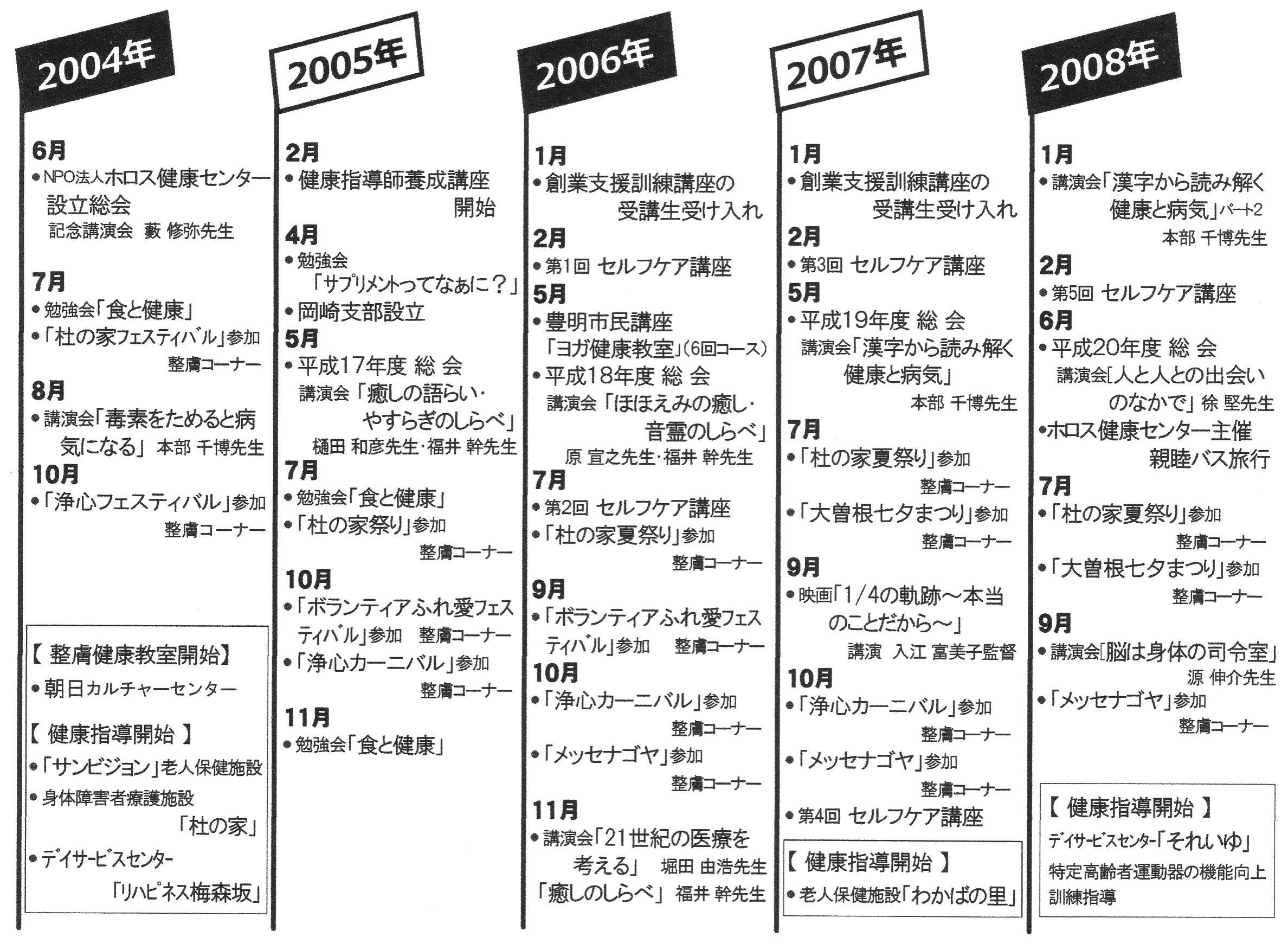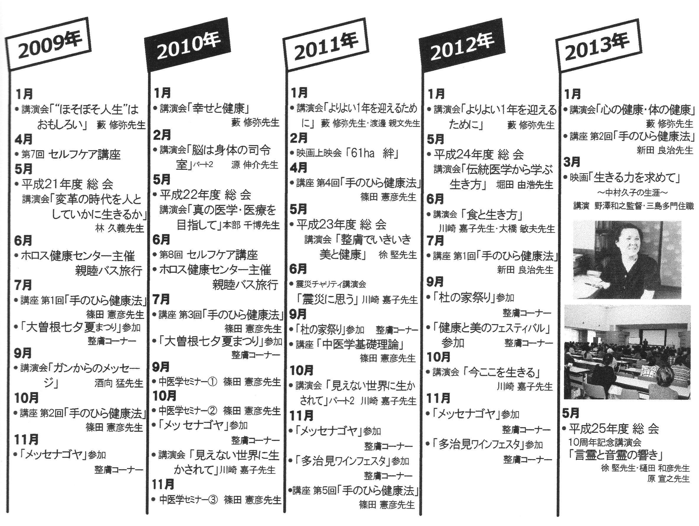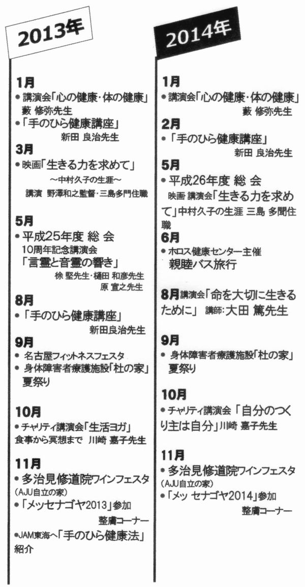 医学は日進月歩の勢いで発達しているのに病人は増え続け、高齢化と共に医療費、介護費は国の財政を圧迫している現状を見て、何とか健康の輪を広げたいと立ち上げたNPO法人ホロス健康センターも気付いてみれば12周年を迎えることとなりました。 コツコツと試行錯誤をしながら、みんなが幸せを感じて生きられる輪(和)を広げていける様努力して参りました。本当に沢山の方の導きと協力によって続けられた事を心から感謝すると共に、どうかこれからもご指導して頂きたくお願い申し上げます。