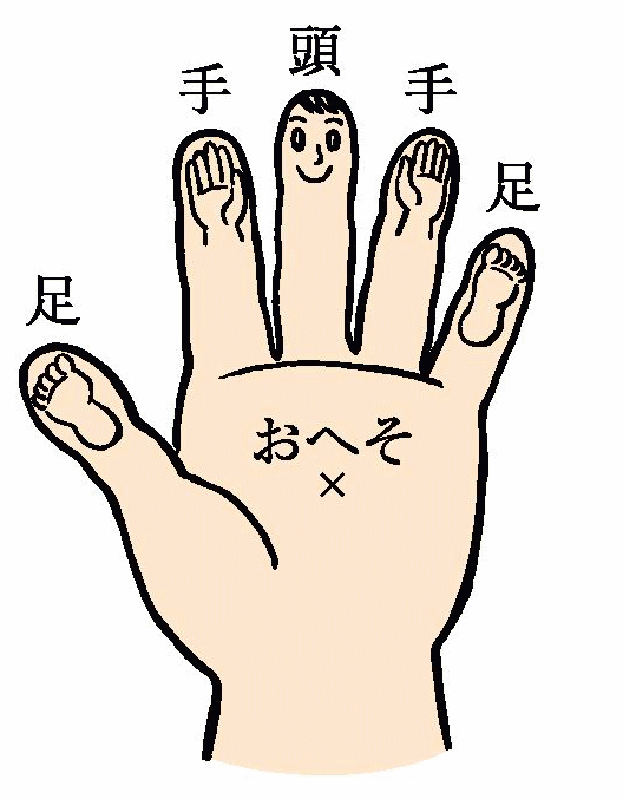 韓国の柳 泰佑医学博士の研究による、「手のひら健康法」は人体の部位が